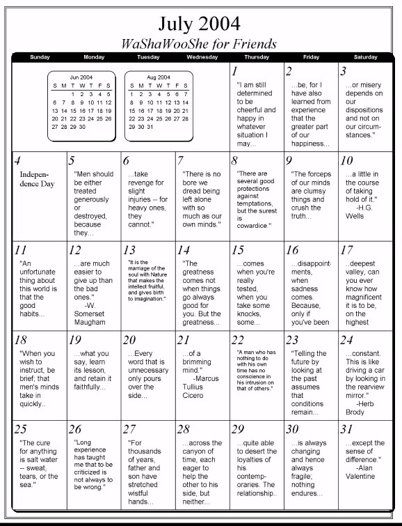 The calendar changes form each year. From the 1980s through 1999 all WaShaWooShe stuff was published on a Commodore 64.